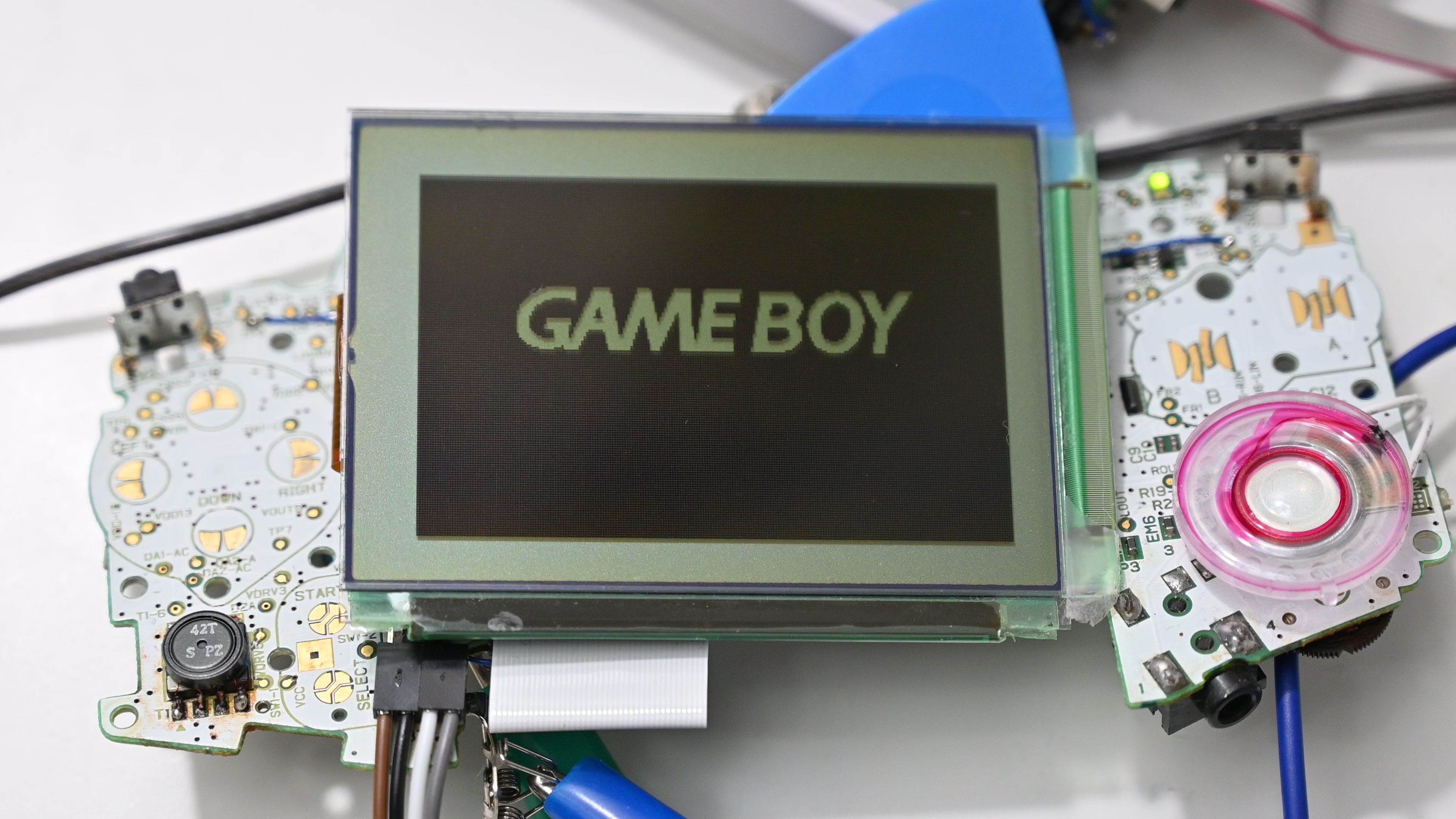 The only missing feature now is adjusting the contrast. I had several solder points for connecting to GBA’s keypad test point. Once they are connected, simply add code to read the button values and adjust the PWM duty cycle.